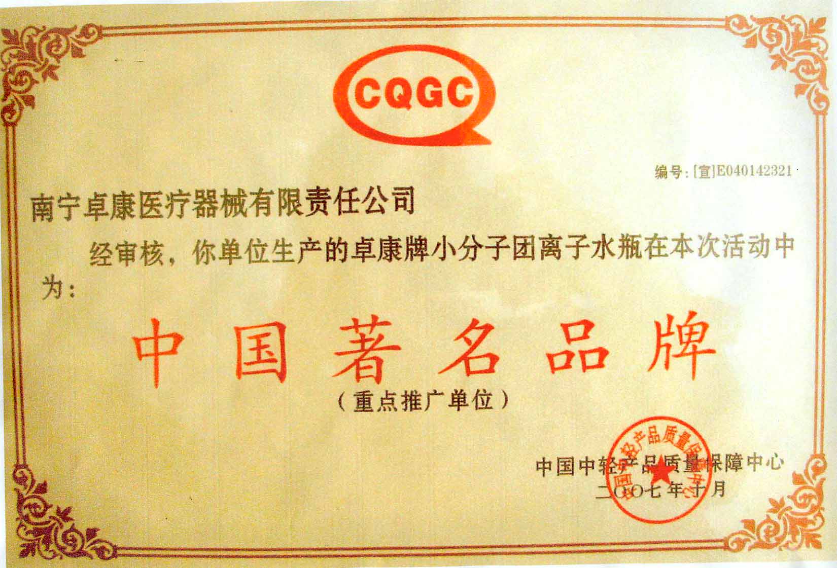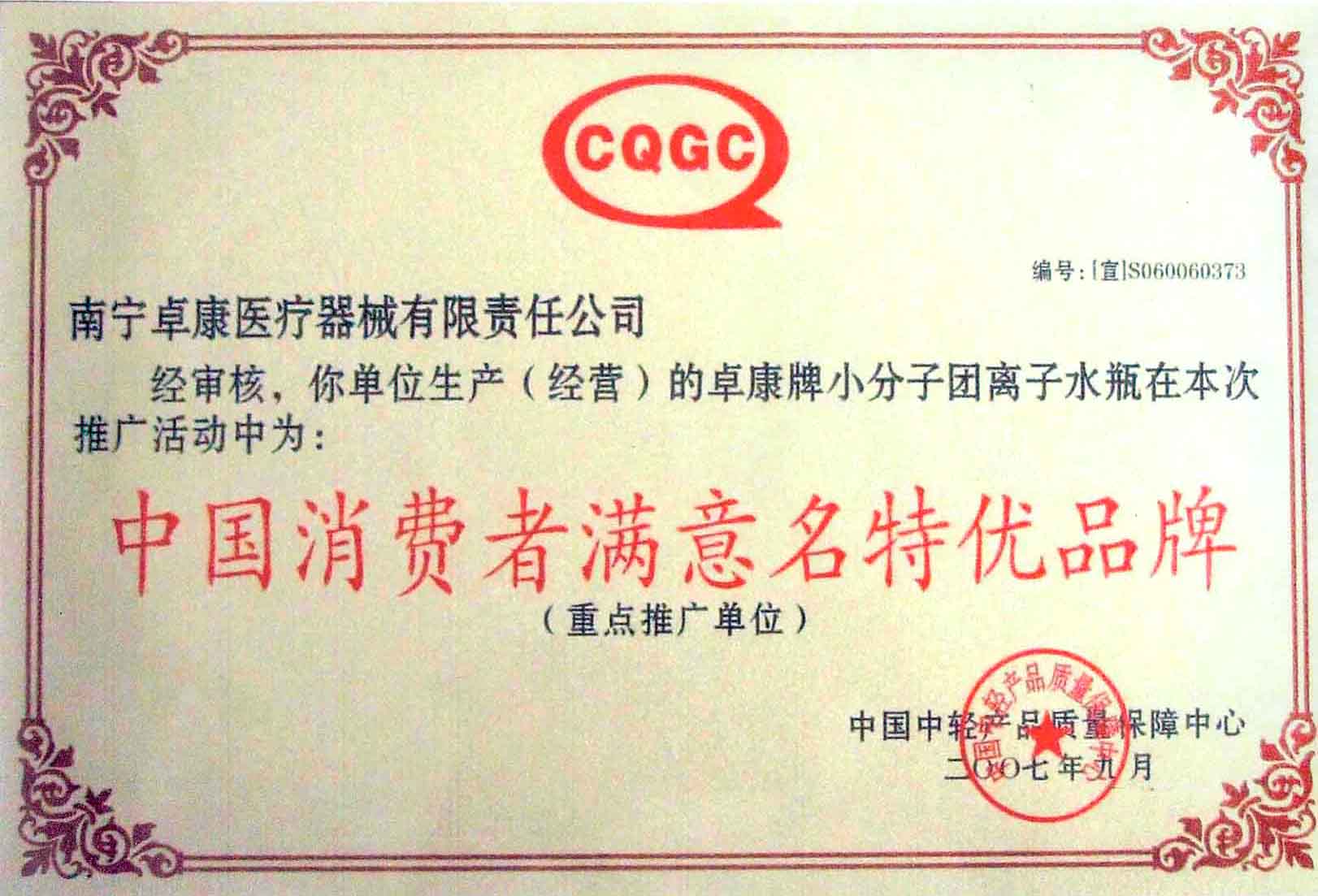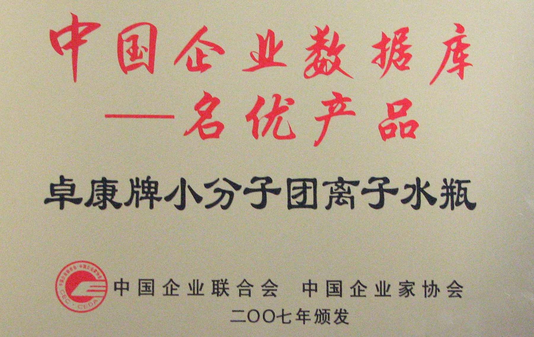 卓康牌離子水瓶榮獲中國(guó)企業(yè)名優(yōu)產(chǎn)品[點(diǎn)小圖見(jiàn)大圖]、中國(guó)著名品牌稱(chēng)號(hào)[點(diǎn)小圖可見(jiàn)大圖]
