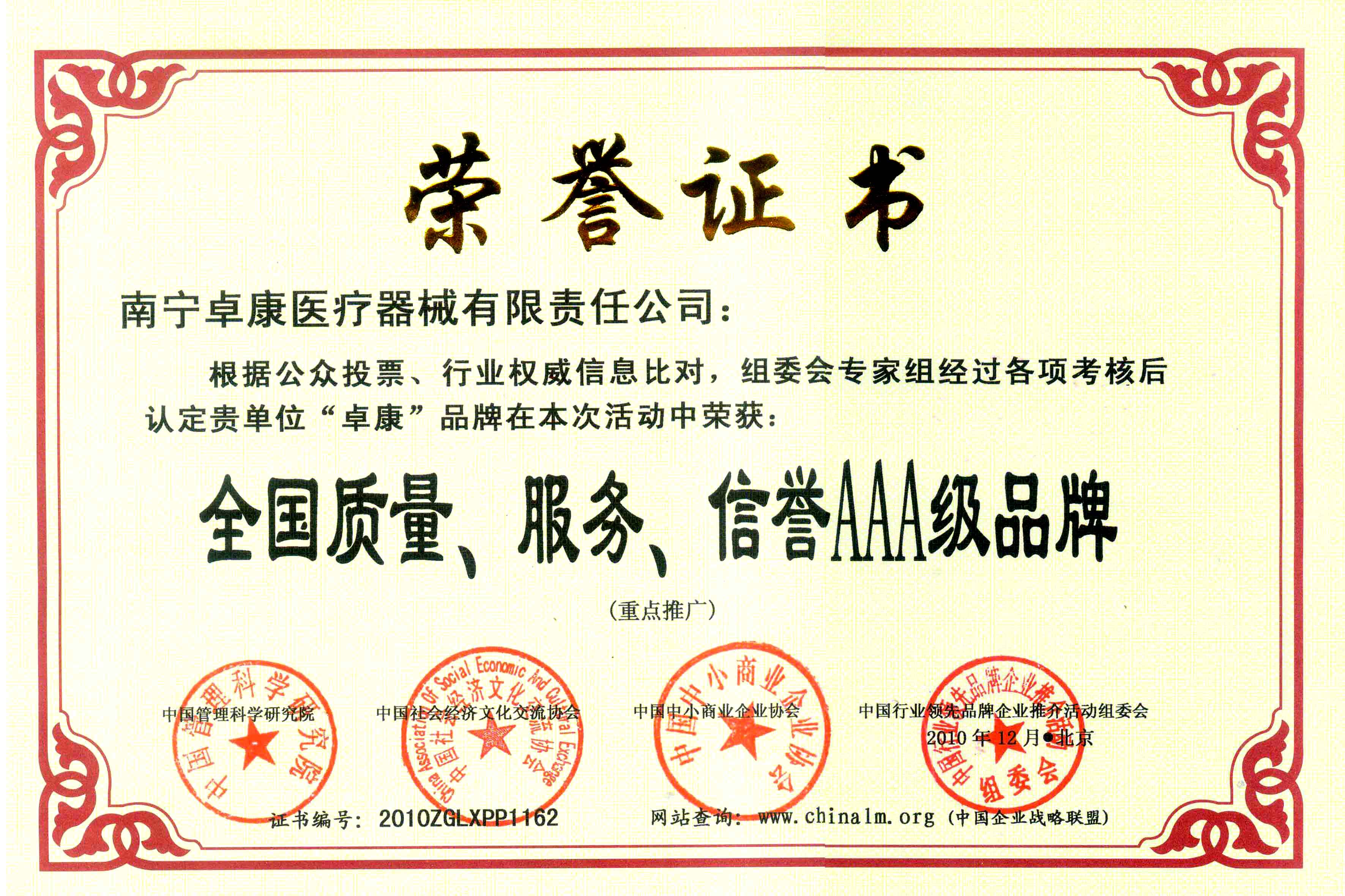 陸江榮獲引領(lǐng)行業(yè)發(fā)展杰出貢獻(xiàn)人物證書(shū) --------卓康公司榮獲全國(guó)質(zhì)量、服務(wù)、信譽(yù)AAA級(jí)品牌證書(shū)