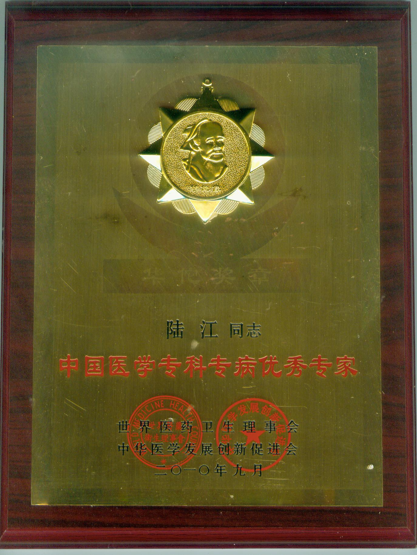 陸江獲得中國(guó)醫(yī)學(xué)專(zhuān)科專(zhuān)病優(yōu)秀專(zhuān)家恃別貢獻(xiàn)獎(jiǎng)