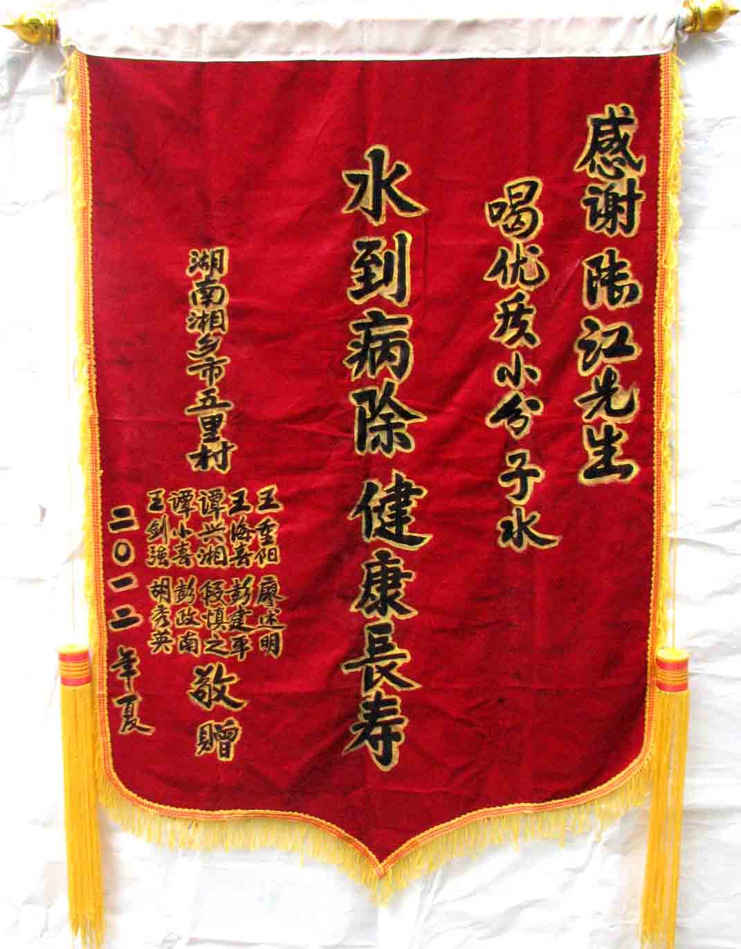 2015年潘志山主動(dòng)寫(xiě)一篇感想《我以親身實(shí)踐打破了冠心病、高血壓、糖尿病需終生服藥的神話(huà)》說(shuō)堅(jiān)持按發(fā)明人陸?江先生倡導(dǎo)的用已饑方食的方法合理膳食,我的健康狀況越來(lái)越好:糖尿病造成的視力下降有了明顯的恢復(fù),末梢神經(jīng)炎導(dǎo)致的指端潰爛現(xiàn)在完全痊愈,痔瘡自從飲用微小分子團(tuán)水半年后就再也沒(méi)有復(fù)發(fā)過(guò),氣滯血瘀造成的嘴唇暗紫也漸漸變得紅潤(rùn),舌下靜脈黑紫消失,足背的動(dòng)脈由以前的隱約感到跳動(dòng)現(xiàn)在變得清晰有力。[13]潘先生披露的訣竅,一是飲用微小分子團(tuán)水給脫水細(xì)胞補(bǔ)水,二是已饑方食”養(yǎng)生智慧,患者都能做到。
